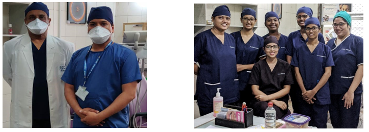 At present the department is headed by Dr. Vishal Dewalwar MDS (OMFS), PGD (HQM) and assisted by Dr. Suroopa Das – Assistant Professor, MDS (Endodontics) along with Dr. Hemant Dhusia – Professor Emeritus, two registrars & four house officers.